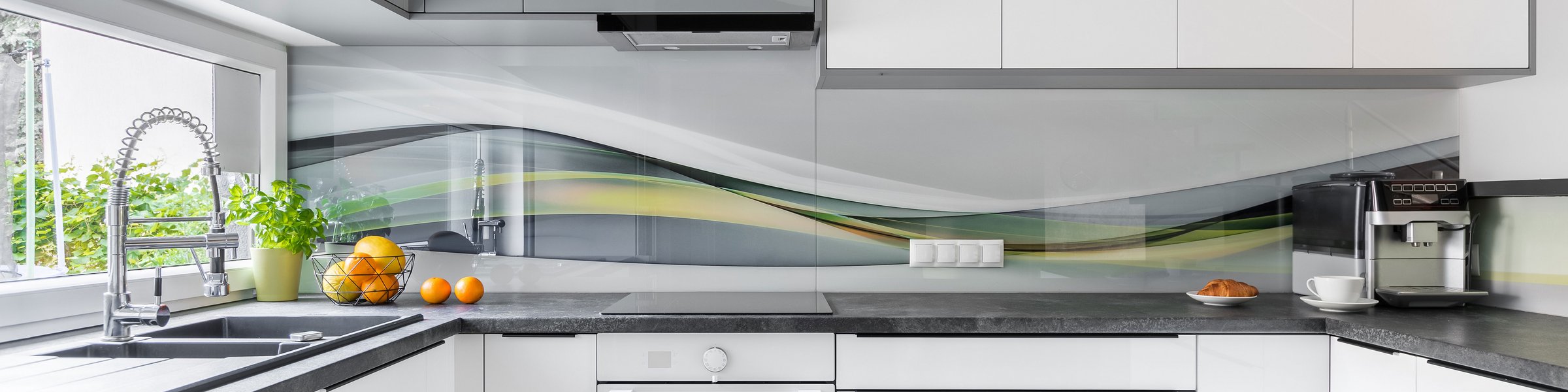 Individuelle Küchenrückwand aus Glas mit Motiv oder Farbe